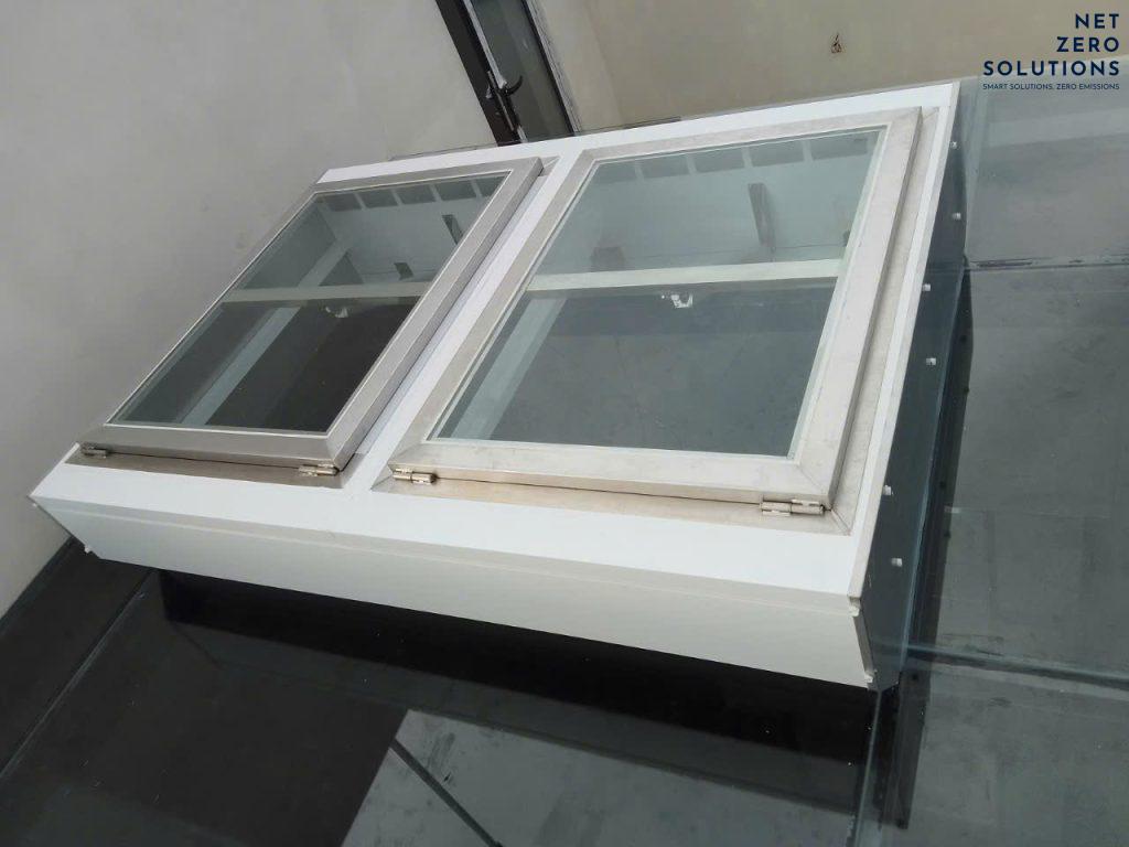 Hình ảnh sau khi lắp Giếng trời thông minh mở tự động thoát khói trên mái kính