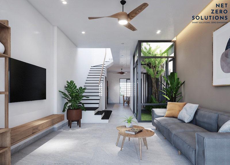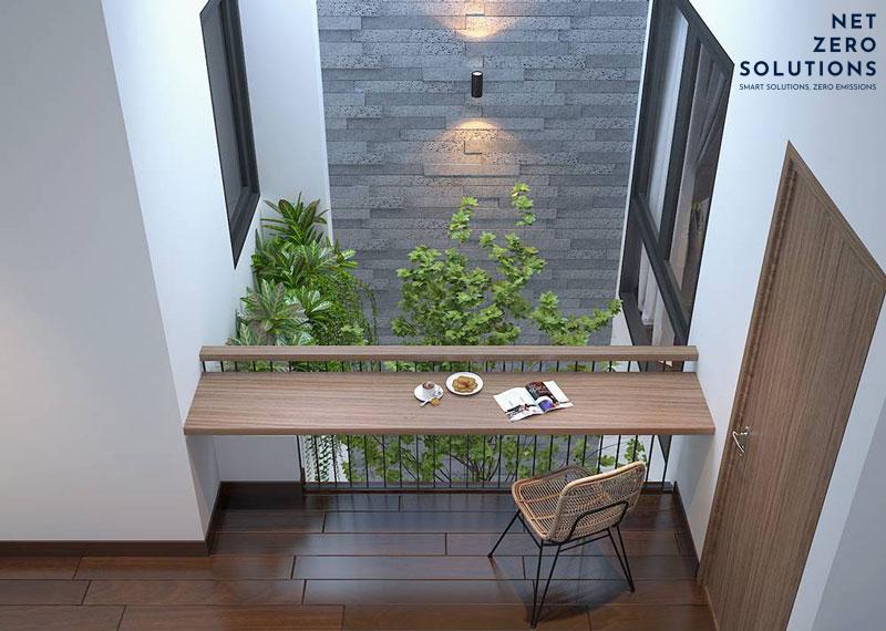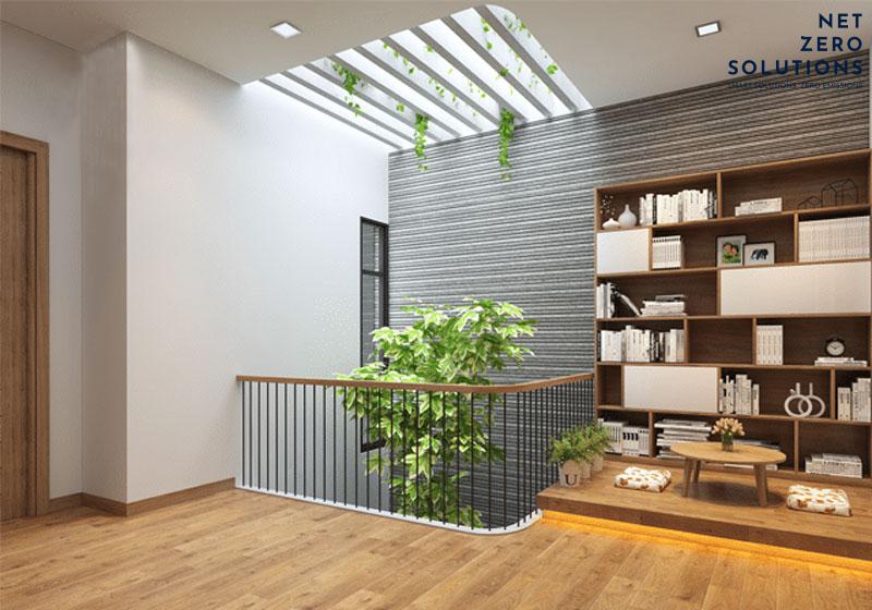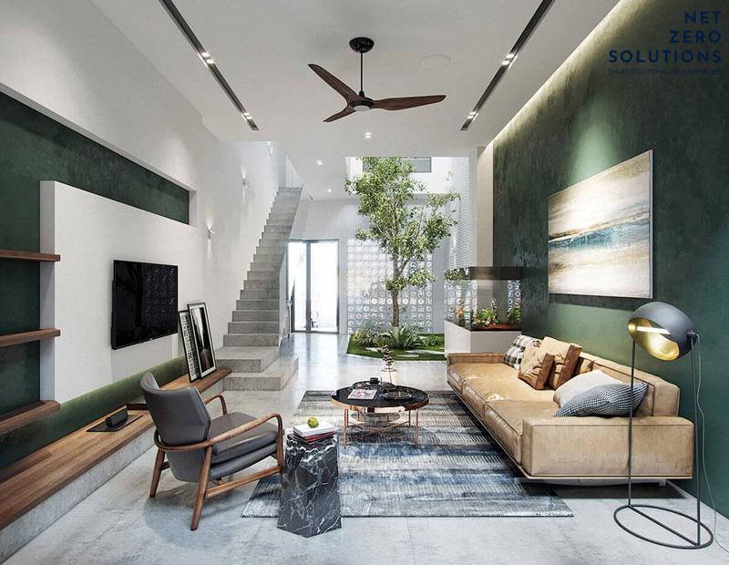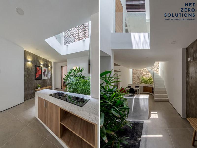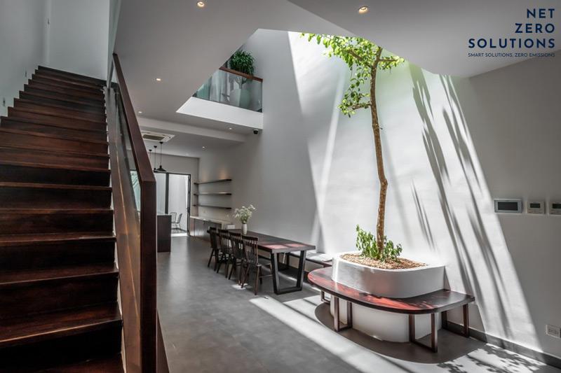 Thông gió tối ưu: Giếng trời tạo ra sự lưu thông không khí tự nhiên, giúp không gian luôn thoáng mát và trong lành. Điều này đặc biệt quan trọng đối với nhà ống, nơi thường gặp vấn đề về lưu thông không khí và ẩm mốc.